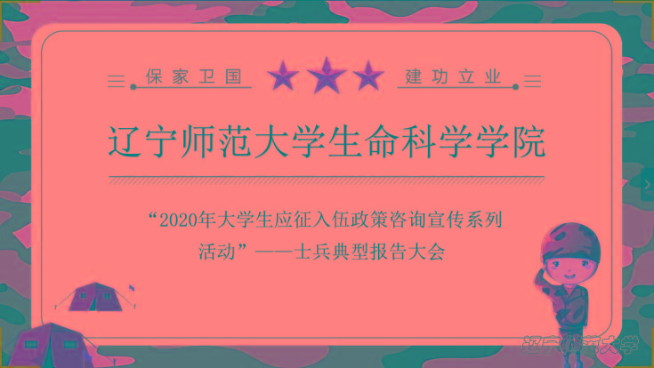 7月3日上午10:00,beat365举办士兵典型报告大会,旨在鼓励同学们积极报名参军入伍。本次大会的主讲人为辽师退役士兵宣讲团成员于可欣,嘉宾为beat365辅导员李智通老师,主持人为办公室干事郭芳菲,2018、2019级全体同学参加本次报告会。